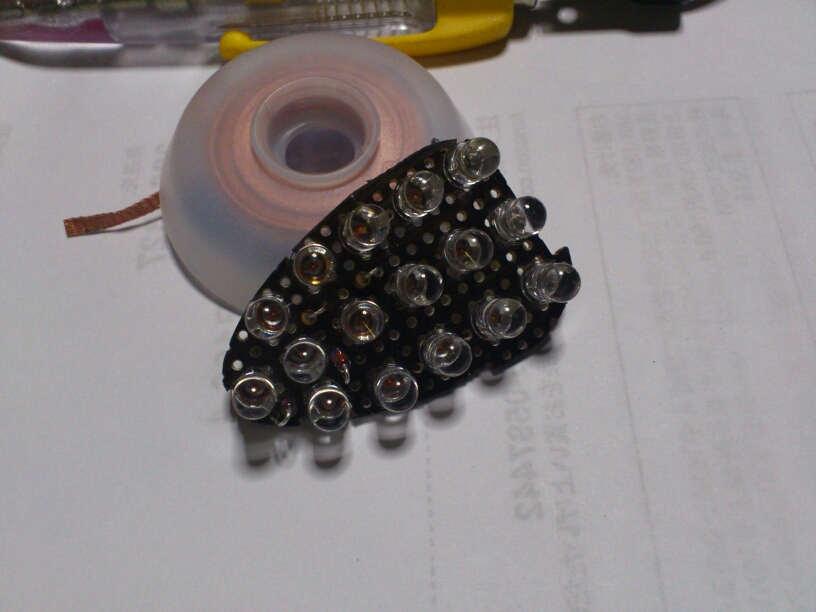 最後にグルーガンでガチガチに固めて防水??wになるかは判りませんが、振動でクラックが入ってLEDの足同士が接触してショートしないようにしておきますw