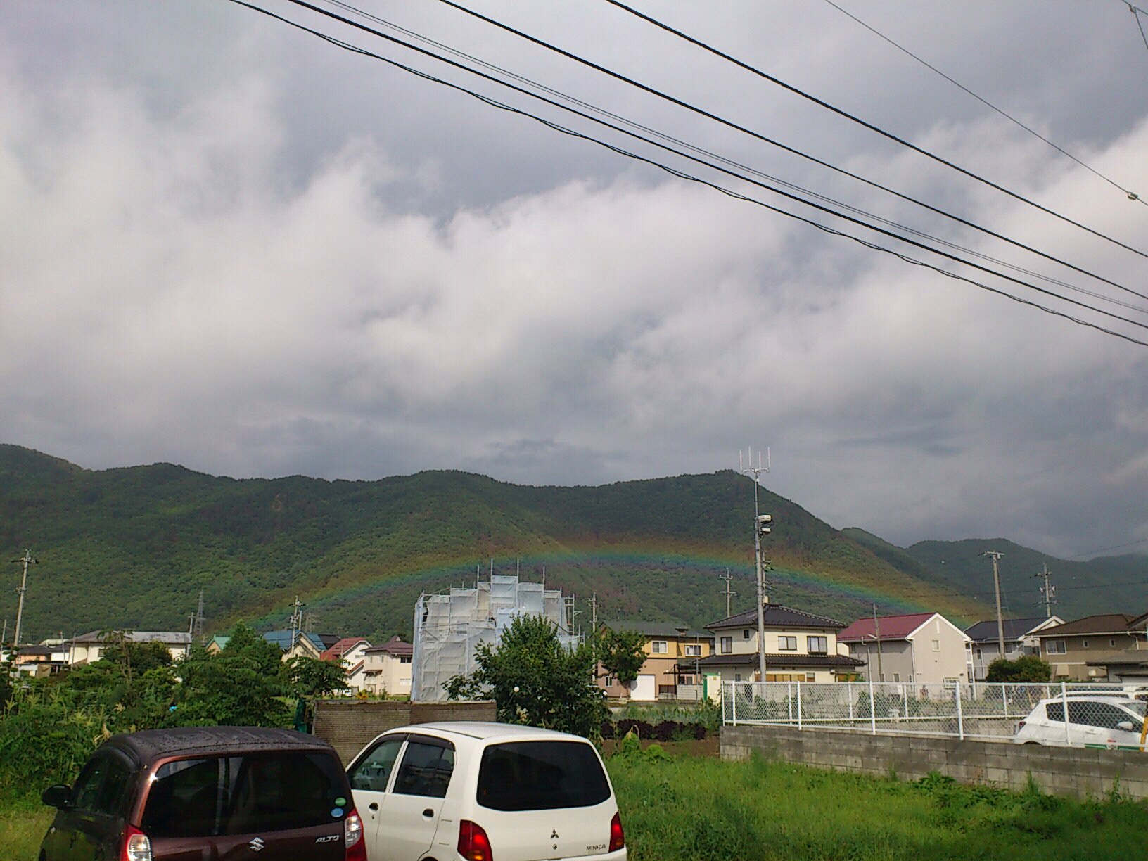 作業中、軽く雨が降った後に外を見たら虹が出てたので思わず撮影(^^)