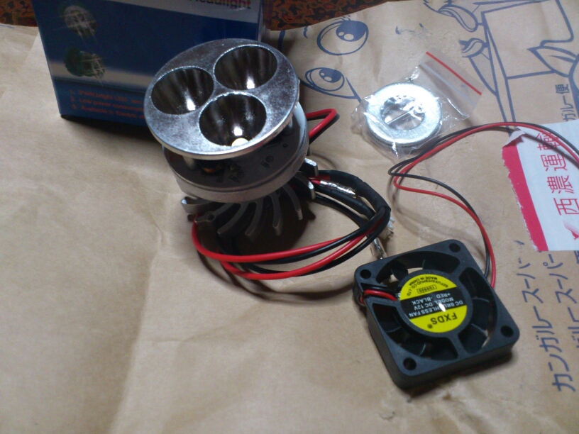 そんな時、ネットでヒートシンクと冷却ファン付きのパワーLEDヘッドライトを発見!!