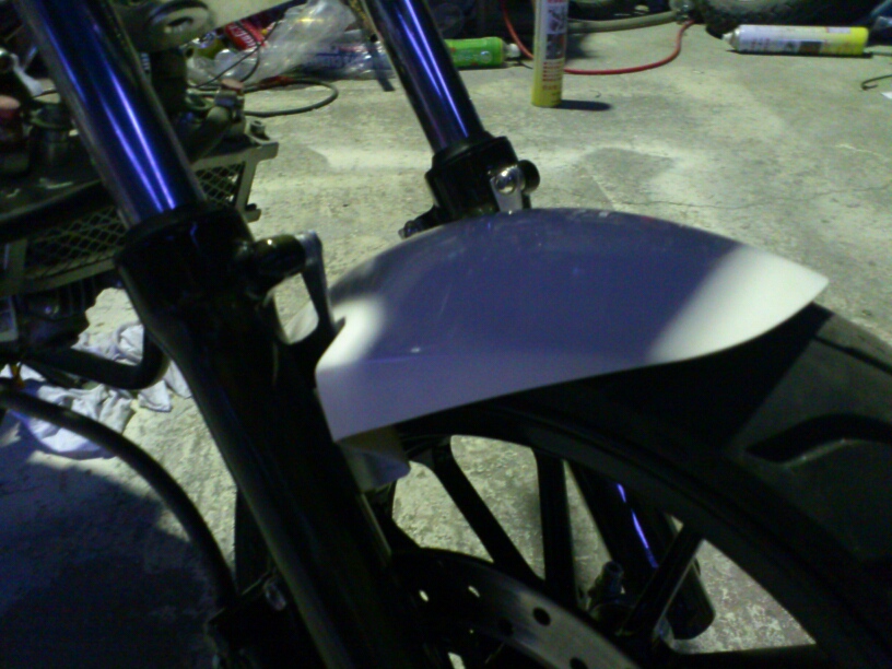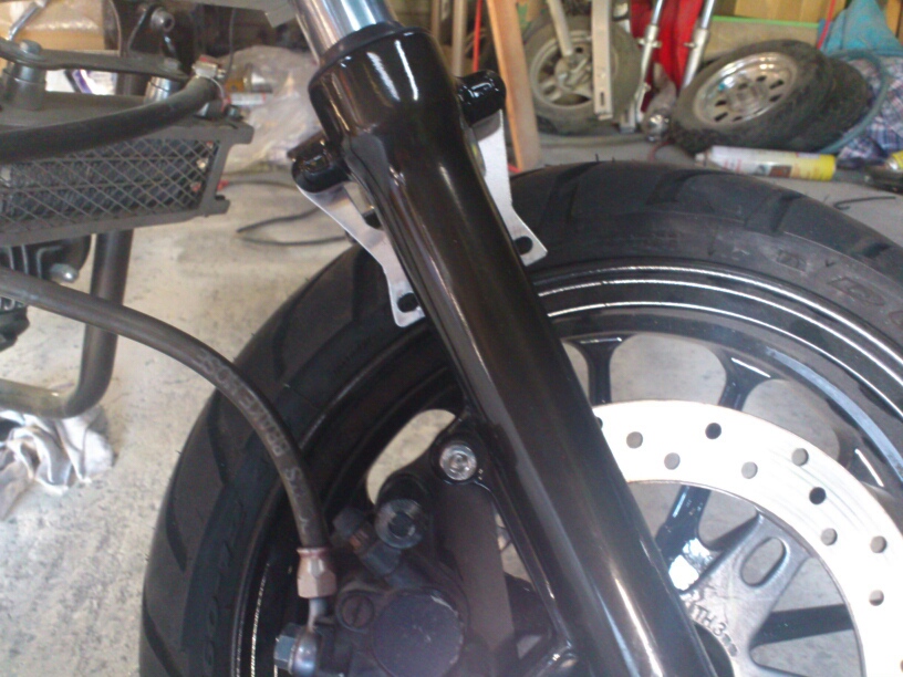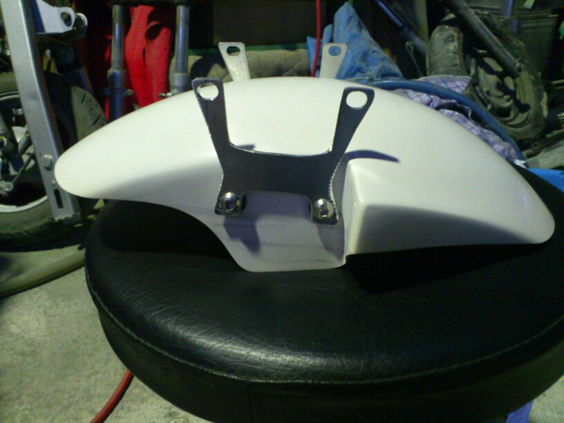 NSRフォークで10インチの場合、フェンダーの位置が高すぎるのでステーでフェンダーの位置を下げるという代物。